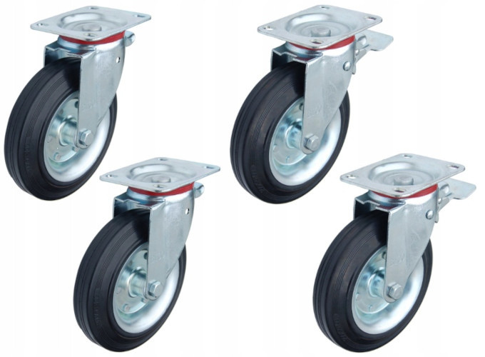 Koła metalowo-gumowe w obudowie skrętnej z hamulcem i bez o średnicy fi 200 mm