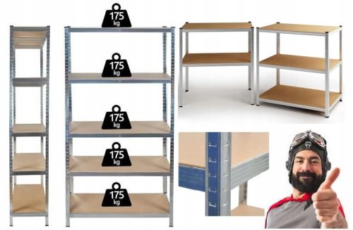 Pod każdą półką poprzeczka wzmacniająca, nośność każdej półki 175kg, ocynkowany.