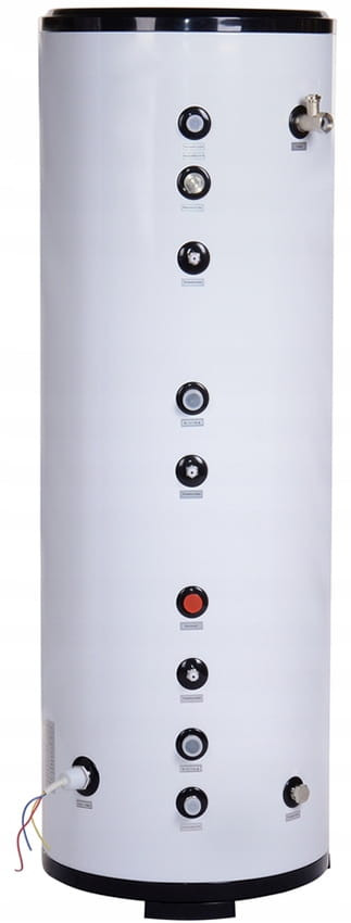 Duża powierzchnia i objętość wężownicy oraz rozłożenie jej w całym zbiorniku zapewniają wysoką wydajność systemu ogrzewania wody użytkowej. Wymiennik w górnym zakresie bufora ma za zadanie szybko dostarczyć c.w.u., natomiast w dolnym odpowiada za wstępne podgrzanie wody i schłodzenie zbiornika.