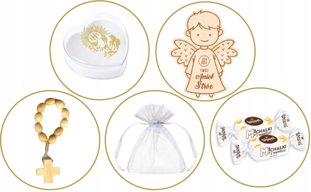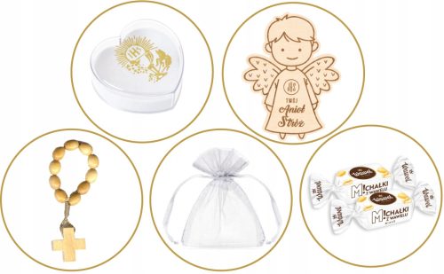 Na tej aukcji możesz zakupić WYPEŁNIENIE do pudełka na komunię. Wszystkie widoczne przedmioty w przegródkach wchodzą w skład prezentowanej oferty.