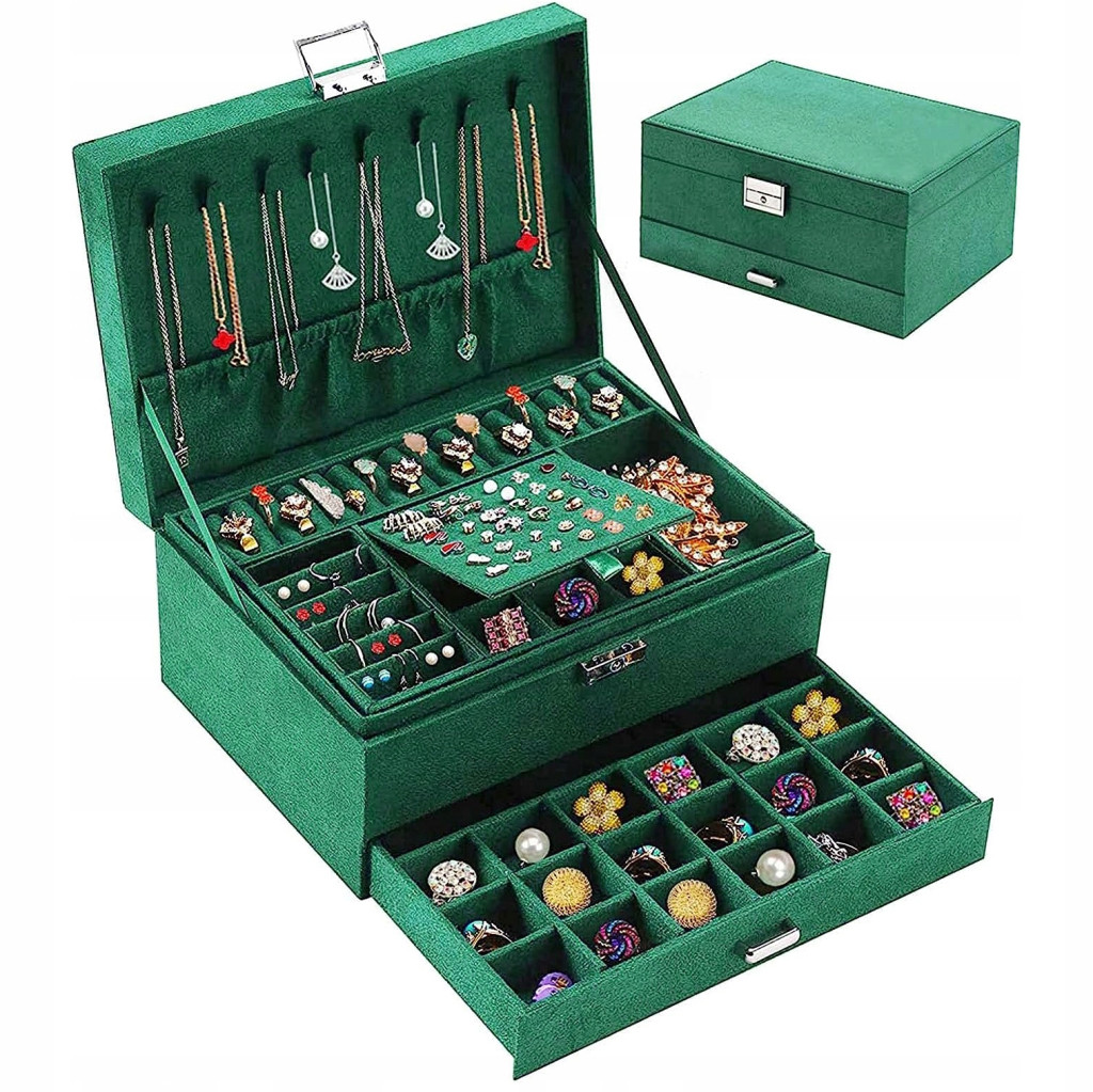 Szukasz idealnego prezentu, który łączy elegancję i funkcjonalność? Szkatułka na biżuterię Malwa jest tym, czego potrzebujesz. Posiada wiele miejsca na kolczyki, pierścionki, wisiorki, broszki, zawieszki itp. Wykonana z najwyższej jakości materiałów, w tym z przyjemnego w dotyku materiału zamszowego, stanowi nie tylko praktyczne, ale i estetyczne uzupełnienie każdej przestrzeni. Ta elegancka szkatułka, zamykana na kluczyk, zapewnia bezpieczeństwo i prywatność Twoich drogocennych przedmiotów. Na dole znajdziesz wysuwaną szufladkę z wieloma przegrodami, zaprojektowaną tak, aby pomieścić różnorodną biżuterię. Po otwarciu szkatułki ujawnia się przestronne wnętrze, które z łatwością pomieści Twoje skarby. Dodatkowo, po wyjęciu wewnętrznej przegrody odkryjesz jeszcze więcej miejsca dzięki kolejnym 6 dużym przegrodom. Szkatułka Malwa to nie tylko świetny sposób na przechowywanie biżuterii, ale również wyjątkowy prezent, który z pewnością ucieszy każdego obdarowanego. Nie przegap okazji, aby sprawić komuś lub sobie wyjątkowy prezent - wybierz szkatułkę na biżuterię Malwa.