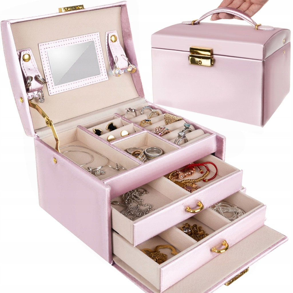 Nasza szkatułka składa się z 3 poziomów, dzięki którym wygodnie zorganizujesz swoją kolekcję biżuterii: