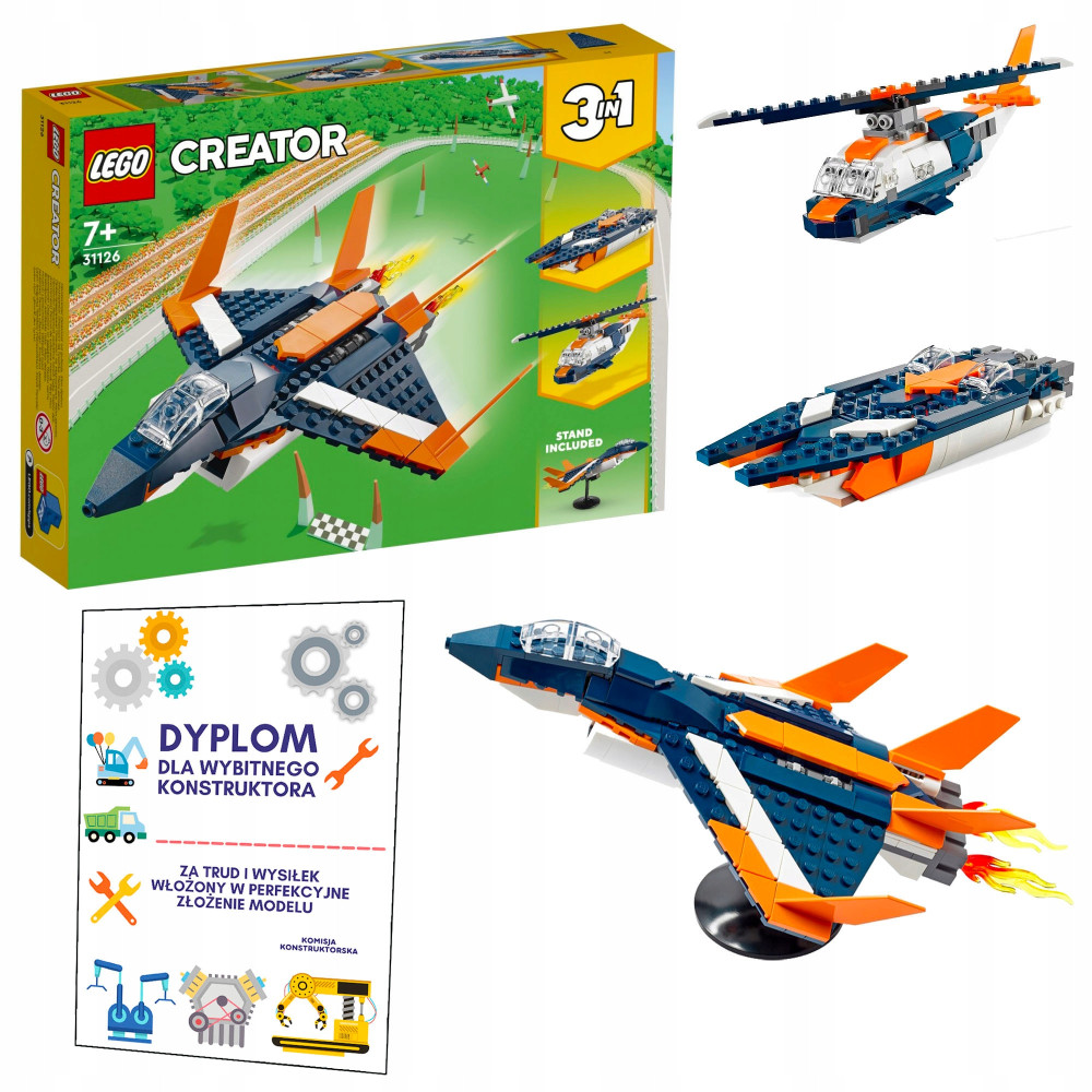 ⭐️ Z zestawu zbudujesz: odrzutowiec, helikopter lub motorówkę.