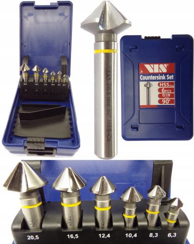 Zestaw sześciu fazowników kobaltowych VIS HSS-CO 90 stopni od 6,3mm - 20,5mm