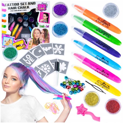 ✨Zestaw do zdobienia włosów oraz robienia tatuaży. Wszystkie ozdoby są bezpieczne oraz łatwo się zmywają ze skóry i włosów.✨