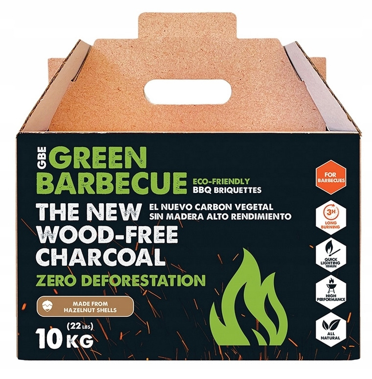 Niesamowity brykiet, wykonany z ekologicznego materiału (bezdrzewnego) jaki m są łupiny orzecha laskowego, wyprodukowany przez znaną na rynku francuska firmę GBE. Green Barbecue Europe specjalizuje się w ekologicznym przetwarzaniu odpadów rolniczych –łupin orzechów laskowych i pestek oliwek. Na tej aukcji całkowicie naturalne, wysokowydajne brykiety z łupin orzechów laskowych, które palą się w stabilnej temperaturze do 3 godzin i dłużej. Może być stosowany do wszystkich rodzajów grillowania: bezpośredniego/pośredniego, niskiego i wolnego, wędzenia itp. Wymyśl swój własny styl grillowania z GreenBBQ