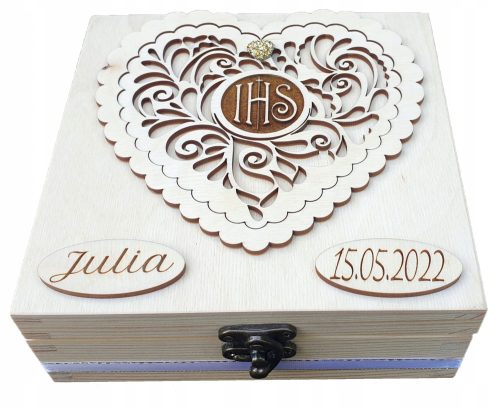*Drewniana dekoracja magnetyczna dla wzorów SERCE i RĘCE jaką jest np. serce nie jest integralną częścią wieka drewnianego pudełka .Jest to dekoracja z zamocowanym magnesem, która oddziałuje na elementy wykonane z niklu, żelaza i kobaltu jak np. lodówka, metalowa lampka itd. Oznacza to, że jako dekoracja umieszczona na wieku pudełka podczas poruszania, otwierania, potrząsania nim może się zsunąć lub wypaść. Jeżeli drewniana dekoracja jaką jest np. serce magnetyczne ma być stałą częścią wieka pudełka, należy podać taką informację podczas składania zamówienia. Jest to związane z utratą funkcji magnetycznej i zamocowaniem przez Nas serca na stałe do wieka pudełka.