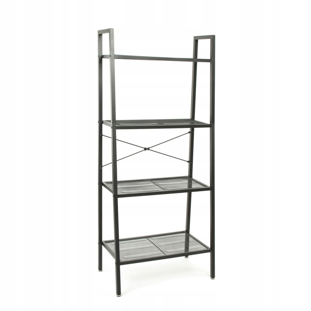 Otwarty regał MALMI zawiera cztery półki, które są ażurowe. Stabilność zapewnia im metalowa rama z dodatkowym wzmocnieniem. Regał ma formę drabiny. Całość została utrzymana w czarnym kolorze. Wymiary mebla wynoszą 60 x 35 x 135 cm. Maksymalne obciążenie jednej półki wynosi 15 kg.