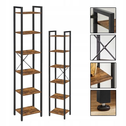 Mieszanka kolorów w stylu vintage brązu i czerni, minimalistyczny design oraz smukły kształt tworzą elegancki regał, który idealnie pasuje do każdego zakątka w salonie, sypialni, kuchni lub gabinecie.