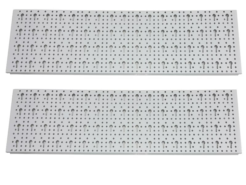 Metalowe płyty perforowane (w rozmiarze 80 x 20 cm) są podstawowym elementem tablicy na narzędzia. Płyty perforowane wpinane są w listwy nośne (o dł. od 50 do 200 cm) w ten sposób możemy tworzyć dowolnej wielkości zabudowy oraz łączyć je z innymi elementami (patrz galeria poniżej).