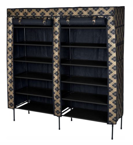 Półka, regał na buty wykonany ze stalowych ramek tworzących jej szkielet. Na stelaż nałożony jest oddychający dobrej jakości materiał Jest łatwa do utrzymania czystości i praktyczna, półka idealnie nadaje się do przetrzymywania czapek, szalików, rękawiczek, butów lub innych drobnych rzeczy. Lekka i solidna konstrukcja w dowolnej chwili możesz ją złożyć, przewieść, przestawić.