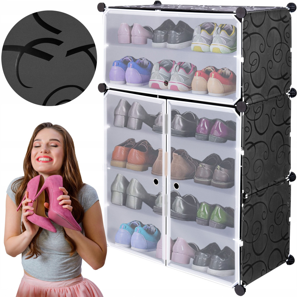 Szafka modułowa RAKIA pozwoli Ci zachować porządek z Twoim obuwiem. Chroni zawartość komór przed kurzem, jest wodoodporna i łatwa w utrzymaniu w czystości. Niewielkie rozmiary i modułowa konstrukcja sprawia, że model doskonale nada się jako uzupełnienie garderoby. Szafka posiada aż 6 półek, w których bez problemu zmieścisz sporą ilość obuwia czy garderobianych dodatków. Każda z półek wykonana jest z metalowego stelażu i wodoodpornego materiału z przykuwającym uwagę wzorem. Montaż szafki jest łatwy i zajmuje niewiele czasu. Wystarczy połączyć poszczególne półki łącznikami z tworzywa ABS. Modułowa konstrukcja szafki RAKIA pozwoli Ci puścić wodze fantazji i skonstruować szafkę na buty o różnych kształtach i wymiarach. Wystarczy połączyć kolejne moduły ze sobą, by stworzyć garderoby i szafki na obuwie o dużych rozmiarach.