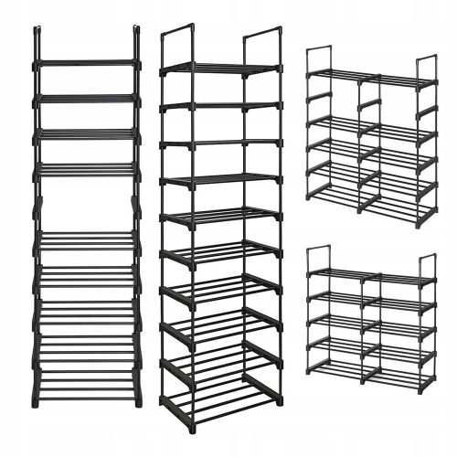 Ten regał na buty z 10 poziomami można zmontować w różnych konfiguracjach, a nawet podzielić na 2 mniejsze, co pozwala dostosować go do różnych pomieszczeń według własnych potrzeb.