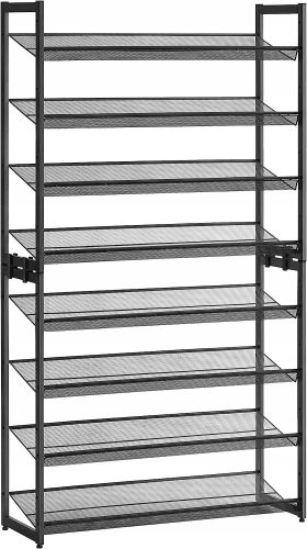 Solidny 8-poziomowy regał na buty - złożony z dwóch 4-poziomowych części, które mogą być używane osobno.