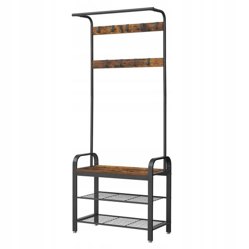 Indywidualny styl vintage. Idealnie nadaje się do przedpokoju do biura czy do sypialni. Dziewięć haków, drążek oraz siedzisko sprawiają, że produkt jest naprawdę pojemny, a jednocześnie ładnie wykończony.
