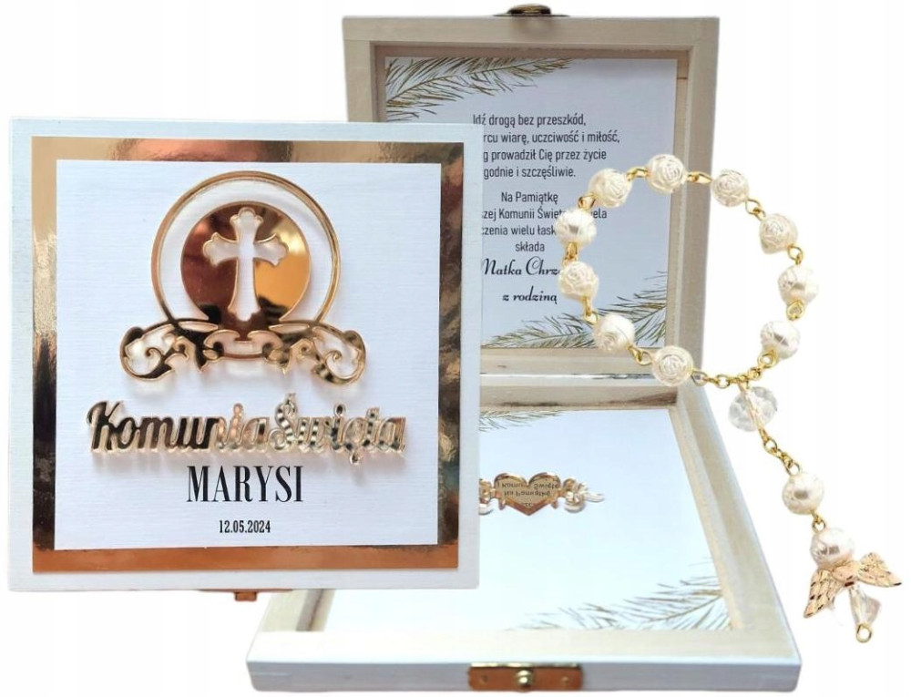 Scatola bianca e oro per la SANTA COMUNIONE con rosario *SET ricordo