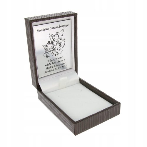 Na tej aukcji kupujesz pudełko z tabliczką w kolorze srebrnym. Istnieje możliwość zmiany koloru tabliczki na złotą na wyraźne życzenie.