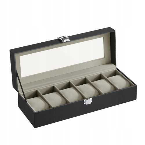 Bardzo elegancka i praktyczna szkatułka na zegarki z elementami w kolorze szarym wpasuje się w każdy wystrój, będzie również stanowiła idealny i trafiony prezent dla każdej kobiety i każdego mężczyzny.