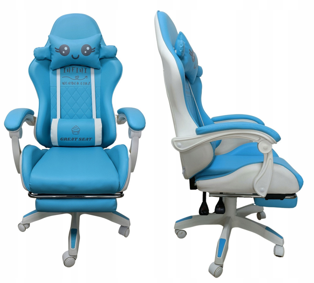 Ten niezwykle designerski fotel gamingowy w kolorze biało-błękitnym nie tylko przyciąga wzrok, ale także oferuje wyjątkowe funkcje dla najbardziej wymagających graczy.