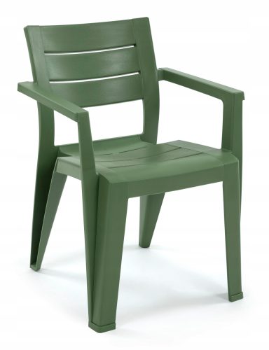 Krzesło JULIE, o charakterystycznym kształcie z lekko zaokrąglonym oparciem i opływowymi podłokietnikami, to nowoczesny design, ale także komfort użytkowania. Przemyślana konstrukcja pozwala na sztaplowanie krzeseł (składane jedno w drugie), co pozwala zaoszczędzić sporo miejsca na przechowywanie produktów. JULIE charakteryzuje się wysoką trwałością na uszkodzenia, odpornością na działanie warunków atmosferycznych i promieni UV. Czyszczenie miękką ściereczką z dodatkiem wody i detergentu.