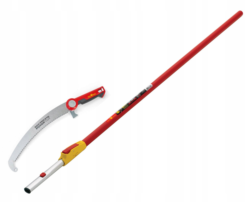 Piła ogrodowa do gałęzi POWER CUT SAW PRO 370 należy do nowej gamy pił oferowanych w ramach marki WOLF-Garten. Narzędzie zostało wyposażone w 37 cm wyprofilowane ostrze z krzyżowym uzębieniem umożliwiającym efektywne i czyste cięcie gałęzi drzew i krzewów. Ergonomiczny kształt uchwytu w połączeniu z miękkimi elementami antypoślizgowymi zapewnia pewność chwytu podczas pracy narzędziem. Dodatkowo uchwyt posiada złącze umożliwiające połączenie produktu z zawartym w zestawie z trzonkiem teleskopowym o maksymalnej długość 4 m, dzięki czemu możliwe jest uzyskanie piły ogrodowej na wysięgniku z zasięgiem aż do 5.5 metra! W tym przypadku bardzo przydatny okazuje się hak znajdujący się na końcu brzeszczotu, który ułatwia usuwanie odciętych gałęzi. Co więcej, dodatkowym atrybutem tej piły do gałęzi jest szpic do zdrapywania kory, który usprawnia rozpoczęcie ciecia. Zastosowany brzeszczot jest elementem wymiennym, dzięki czemu produkt cechuje długowieczność i trwałość. Piła ogrodnicza POWER CUT SAW PRO 370 to niezbędne narzędzie w każdym ogrodzie pełnym drzew wymagających okresowej pielęgnacji dla ich zdrowego wzrostu. Produkt objęty 10 letnią gwarancją!