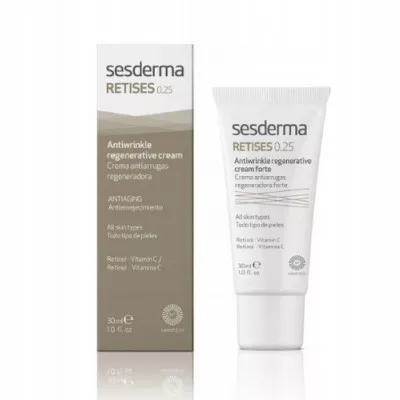 Krem przeciwzmarszczkowy regenerujący na noc z retinolem (0.25%) o silnym działaniu wygładzającym. Pielęgnuje i odżywia skórę. Poprawia wygląd i elastyczność skóry. Zawiera doskonałą kompozycję retinolu 0,25%, propionianu retinylu 0,22%, roztworu oligopeptydu palmitylu 6%, glukozydu askorbylu 1%, glikoprotein z Oceanu Antarktycznego 1% oraz kwasu bosweliowego 1%. Zawansowana formuła łącząca siłę czystego retinolu (wysokie stężenie witaminy A połączonej z witaminą C). Retinol reguluje hiperaktywność pobudzonych melanocytów, dzięki temu zmniejsza i rozjaśnia przebarwienia. Reguluje proces keratynizacji, stymuluje proliferację keratynocytów. Złuszcza i odbudowuje skórę – wygładza powierzchnię skóry i zwiększa jej grubość. Przywraca prawidłowe stężenie witaminy A w skórze, które zostało zmniejszone przez negatywny wpływ promieniowania słonecznego, odwraca szkody spowodowane ekspozycją na słońce. Zwiększa syntezę kwasu hialuronowego i kolagenu, stymuluje proliferację fibroblastów. Proponian retinylu to bardziej stabilna postać estrowa retinolu – potęguje jego efekt. Glukozyd askorbylu powoduje intensywną stymulację syntezy kolagenu i elastyny. Kwas bosweliowy chroni przed degradacją włókien kolagenu i elastyny. Wszystkie te składniki czynią skórę promienistą, usuwają przebarwienia i redukują głębokie zmarszczki już po miesiącu stosowania.