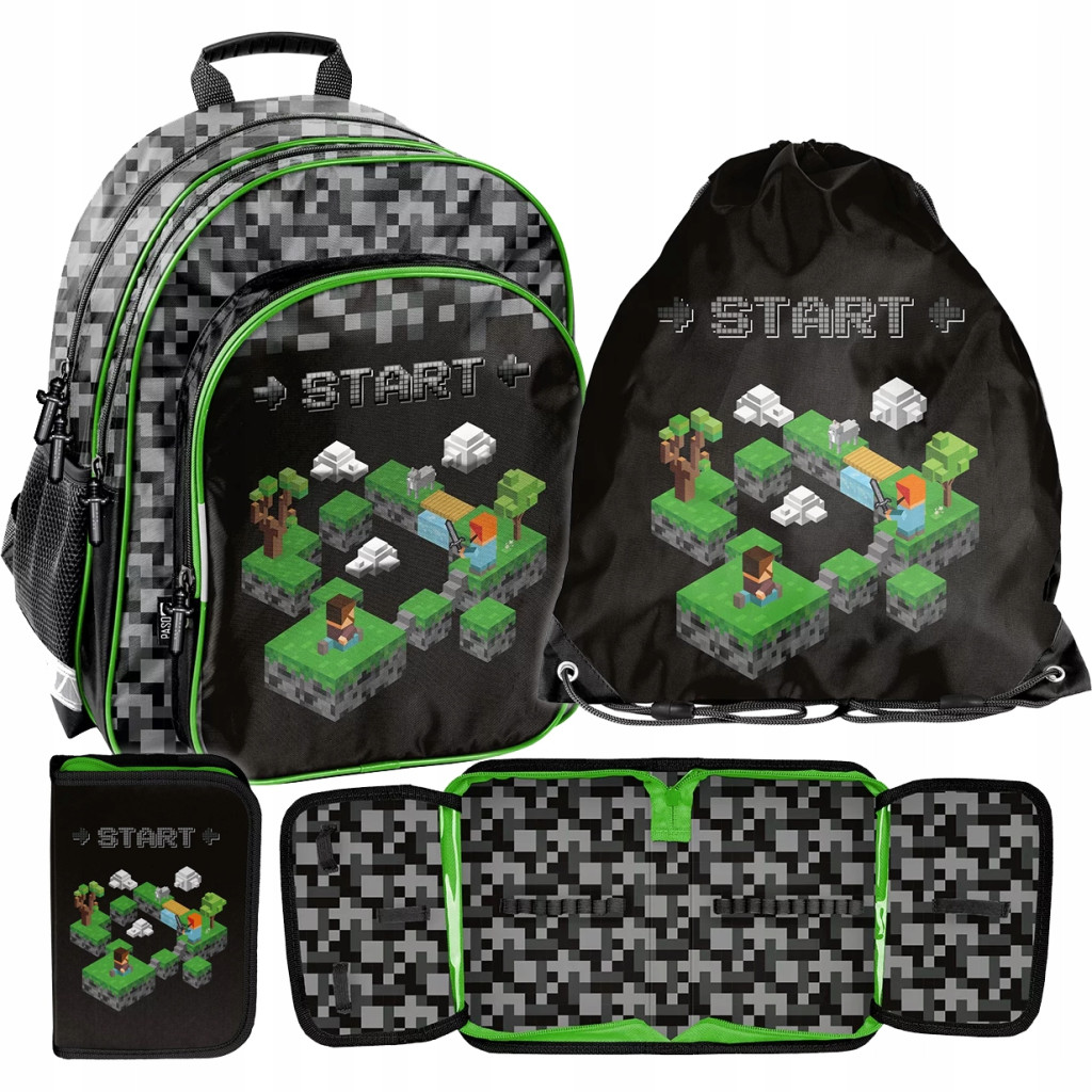 Set Scuola Zaino, Astuccio e Sacca Tema Minecraft per Gamer - Paso