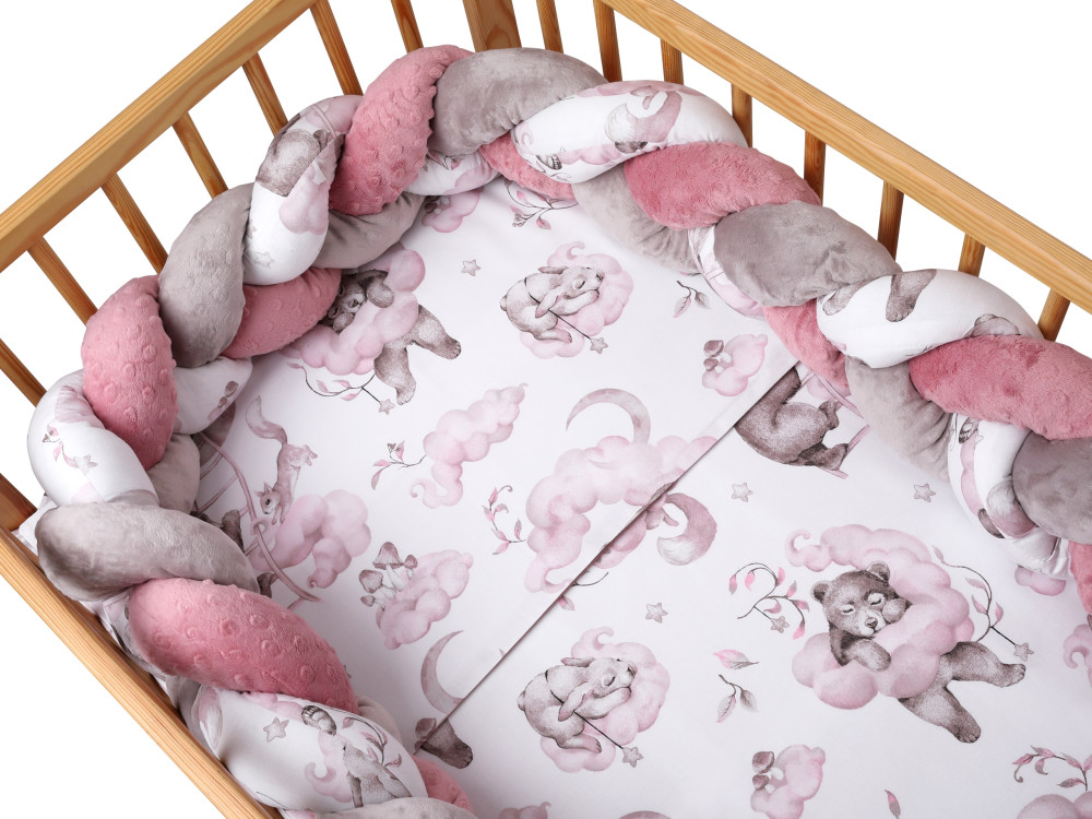 Idealny Zestaw do łóżeczka dziecięcego składający się z 3 elementów. Pościel została wykonana z Polskiej ba-wełenki, posiadającej certyfikat Oeko-Tex Standart 100 a osłonka wypełniona bezpiecznym dla maluszków puchem silikonowym pierwszego gatunku.