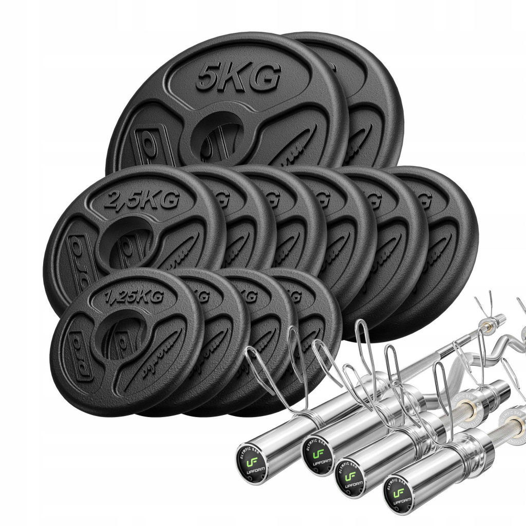 Zestaw 65kg | Gryf olimpijski 180cm + gryf olimpijski lekko łamany 120cm + 2x gryf olimpijski krótki 50cm+ obciążenia olimpijskie 2x5kg, 6x2,5kg, 4x1,25kg - Marbo Sport