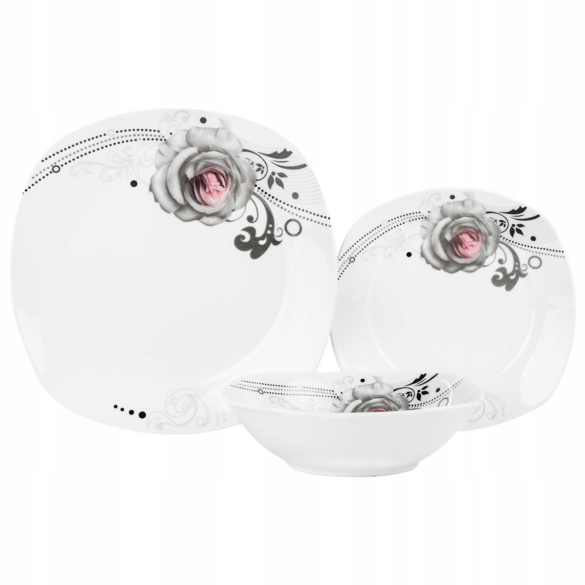 ✅ komplet talerzy to zastawa w klasycznym, kwadratowym kształcie, który to od lat cieszy się dużą popularnością. Uniwersalna forma, gładka powierzchnia i piękna dekoracja to wszystko sprawia, że są one idealne zarówno do serwowania zwykłych, codziennych posiłków w domowym zaciszu jak i podczas imprez w gronie rodziny i przyjaciół.