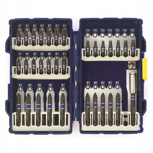 Zestaw wkrętaków udarowych wyróżnia się jakością końcówek, które są trwałe i precyzyjnie wykonane. Solidnie wykonana kaseta jest wyposażona w metalową przetyczkę na całej swej długości dzięki czemu została zwiększona wytrzymałość oraz żywotność kasety. Ten zestaw bitów to idealne rozwiązanie dla profesjonalistów stawiających na stosunek jakości do ceny.