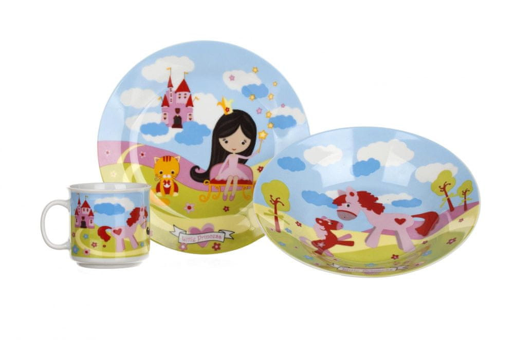 Zestaw ten stworzony został z myślą o najmłodszych. Posiada kolorowy nadruk przestawiający ulubione zwierzęta, księżniczki, maszyny budowlane. Dzięki dużej gamie wzorów każde dziecko znajdzie coś dla siebie - zarówno chłopiec jak i dziewczynka. Kolorowe talerze i kubeczki z pewnością zachęcają do spożywania posiłków.