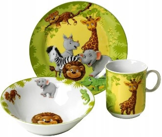KOMPLET DLA DZIECI CERAMIKA MISKA KUBEK TALERZ