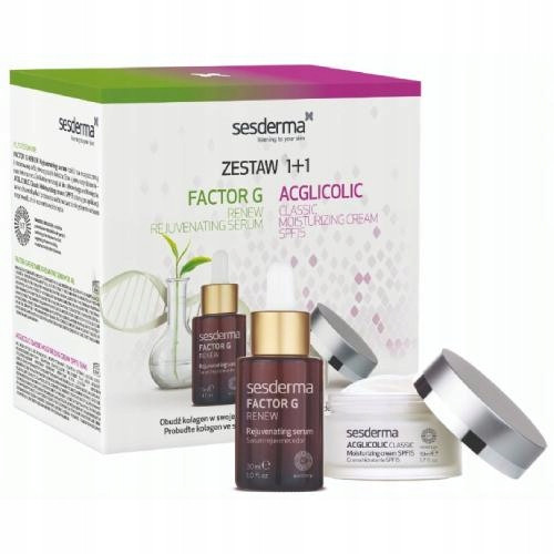 SESDERMA Zestaw FACTOR G Renew Serum do twarzy, 30ml + ACGLICOLIC Classic Krem nawilżający SPF15, 50ml