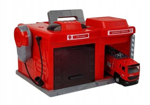 Remiza Straży Pożarnejto centrum pomocy oraz garaż dla wozu strażackiego. Na dachu umieszczono 3 przyciski uruchamiającesygnały dźwiękowe z kogutami. Obok znajduję się krótkofalówka do kontaktu z centralą. W bazie znajdują siędwa stanowiska dla pojazdów: jedno w hangarze oraz jedno w garażu z otwieraną bramą. Dzięki zestawowi dziecko będzie mogło wcielić się w rolę dowódcy i za pomocą krótkofalówki wydawać rozkazy strażaków. Od teraz i Ty możesz ratować ludziom życie i ich budynki. Teraz możesz już wyjeżdżać do pożarów i je gasić. Straż pożarna wydaje dźwięki syreny oraz sygnały świetlne dzięki czemu bez problemu przepuszczą Was wszystkie auta.