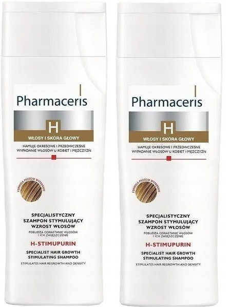 PHARMACERIS H-STIMUPURIN spcjalistyczny szampon stymulujący wrost włsoów to dermokosmetyk opracowany specjalnie dla kobiet i mężczyzn z problemem nasilonego okresowego i przedwczesnego wypadania włosów. Pomaga walczyć z łysieniem o podłożu genetyczno-hormonalnym oraz spowodowanym czynnikami środowiskowymi. Skutecznie zapobiega wypadaniu włosów wynikającej z długotrwałego przyjmowania leków, przemęczenia,stresu, osłabienia organizmu oraz po ciąży. Bezpieczny dla wrażliwej skóry głowy. Szampon delikatnie i skutecznie oczyszcza włosy i skórę głowy. Wygładza strukturę włosa, wzmacnia i przywraca ich naturalną gęstość. Posiada pH neutralne dla skóry.