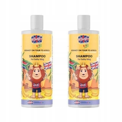 Zestaw zawiera 2 opakowania szamponu dla dzieci Ronney Kids o zapachu bananowym.