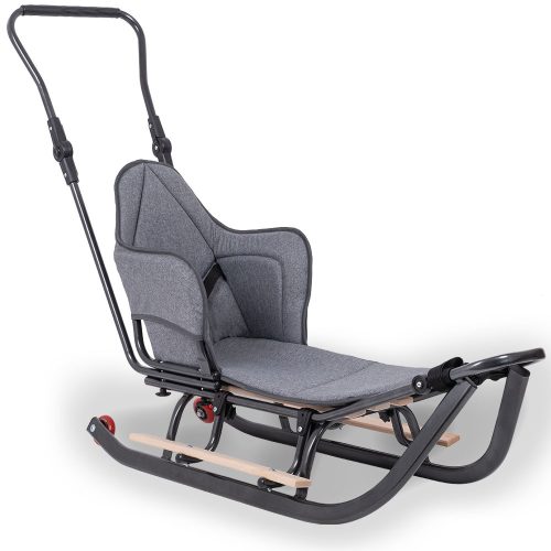 Polskie wielofunkcyjne sanki, wyposażone w pchacz, siedzisko, materacyk, podnóżki i kółka model na sezon 2024/2025 znakomicie sprawdzą się w śnieżne dni i zapewnią doskonały wypoczynek i zabawę Twojemu dziecku.