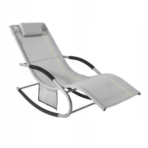 Duży leżak do bujania w modnym kolorze. Posiadająca funkcję oddychającą recliningową, usuwaną z gniazda bocznego. Podłokietniki pokryte miękkim plastikiem EVA.