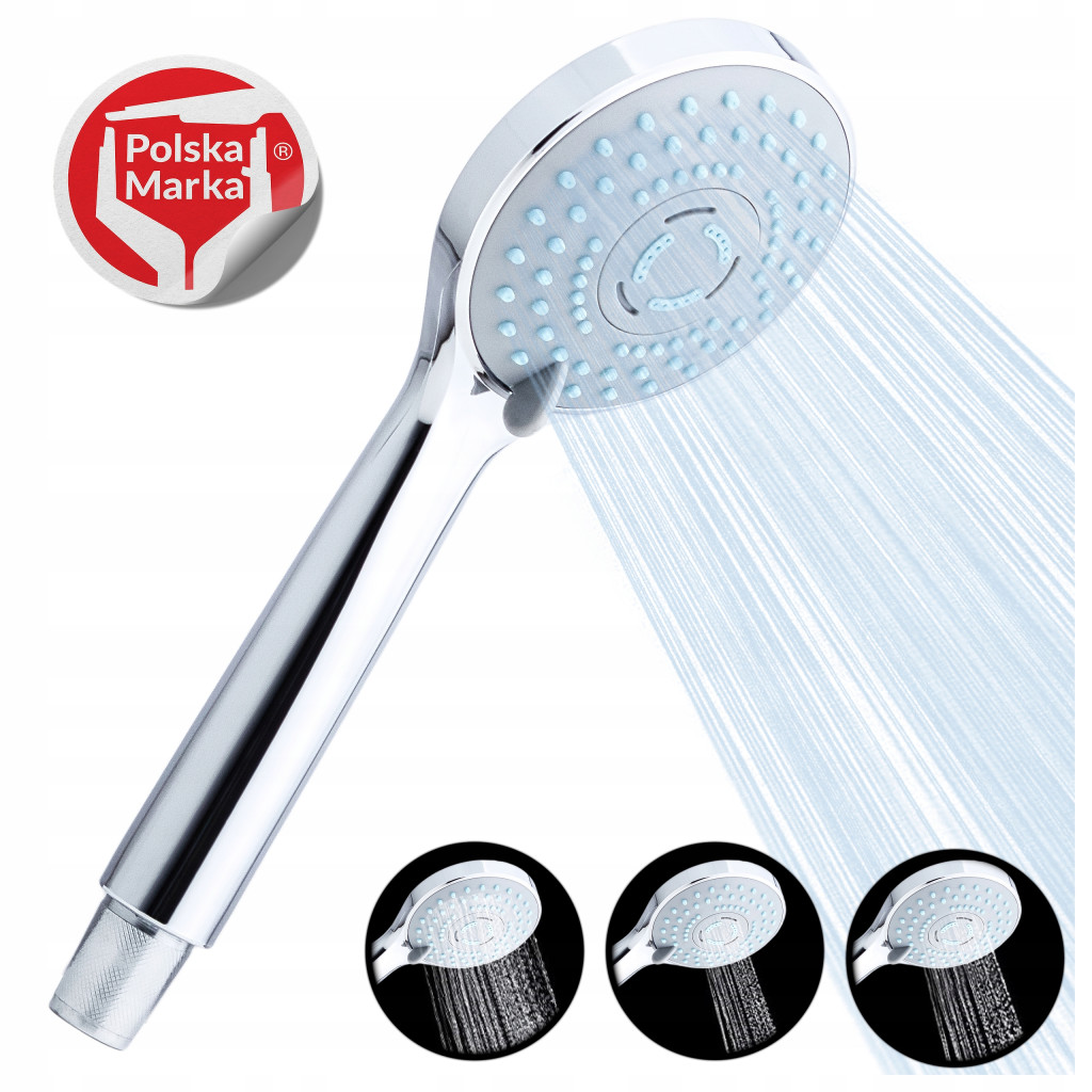 Lekka bezpieczna dla wanny słuchawka prysznicowa 3-zakresowa SOTBE LARK z systemem ANTI CALC kolor chrom.