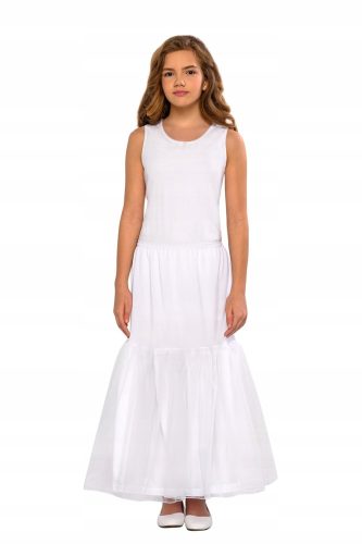 Mamy do zaoferowania Państwu nową halkę komunijną. Halka jest koloru białego, dodatkowo posiada wszyty tiul, dzięki któremu sukienka lub alba będzie się ładnie układać. Halka posiada rozciągliwą gumę, która dobrze dopasowuje się do kształtów ciała.