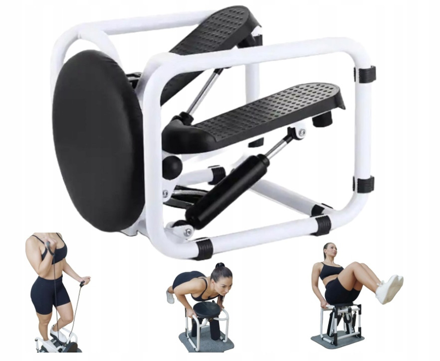 Dzięki konstrukcji steppera możesz wykonać ponad 7 różnych ćwiczeń, skutecznie trenując mięśnie całego ciała. Uwaga: Siła pedałów steppera nie jest regulowana i ma naturalną odporność, do której należy się przyzwyczaić.