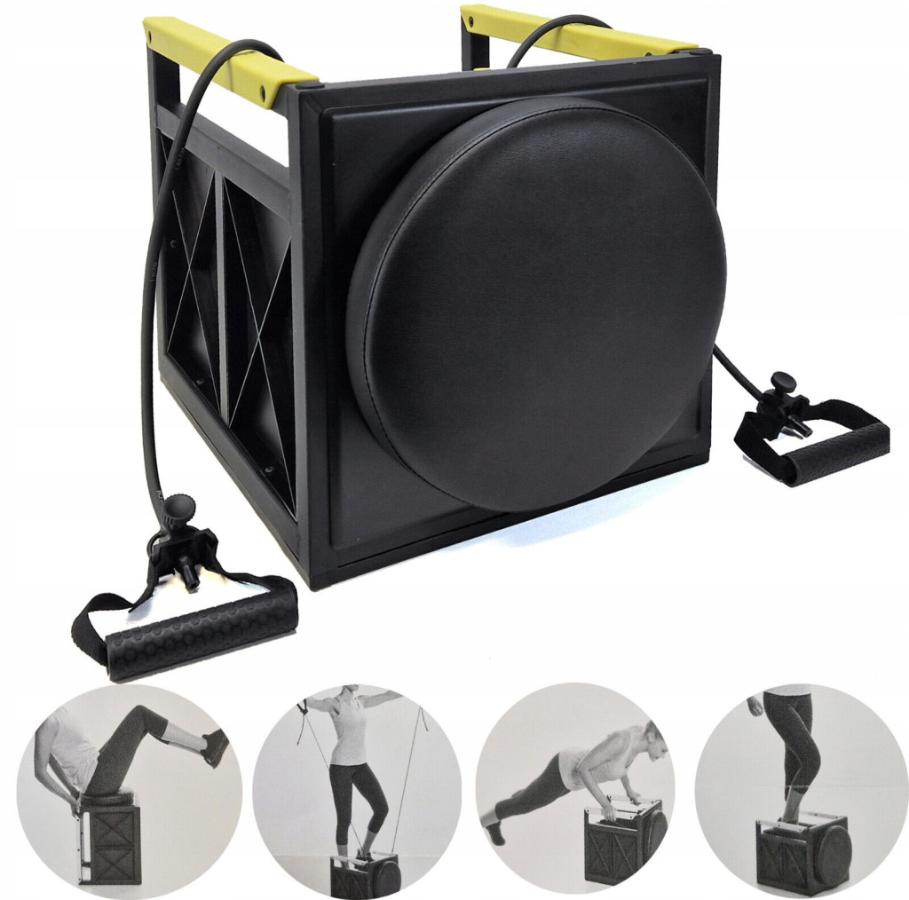 Stepper prostokątny QMB z linkami w kształcie kostki to innowacyjne urządzenie do treningu domowego, które pozwala na kompleksowe ćwiczenie mięśni dolnych partii ciała oraz górnych partii dzięki dołączonym linkom.