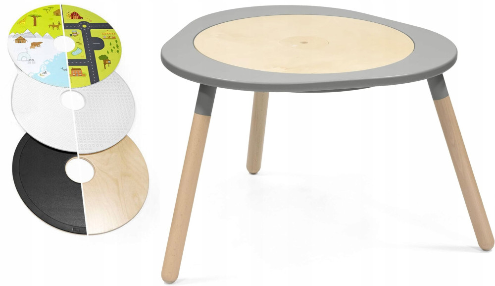 Wymienność tablic w Stokke MuTable to nieskończona atrakcja dla maluchów. Rodzeństwo może indywidualnie wykorzystać jeden stolik, a spotkanie z przyjaciółmi przerodzi się w burzę mózgów jeśli włączymy do zabawy puzle, klocki, kolorowanki, kredę albo inne niezwykłe elementy.