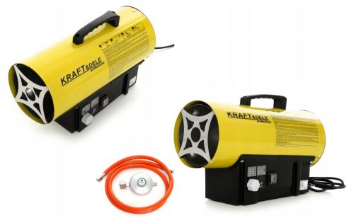 Nagrzewnica marki Kraft&Dele model KD11700 o mocy 25 KW na gaz propan-butan(LPG). Nagrzewnica posiada wbudowany termostat z regulacją temperatury i cyfrowy wyświetlacz, dzięki któremu można łatwo ustawić zamierzoną temperaturę otoczenia. Nagrzewnica działa automatycznie, w zależności od ustawienia temperatury.