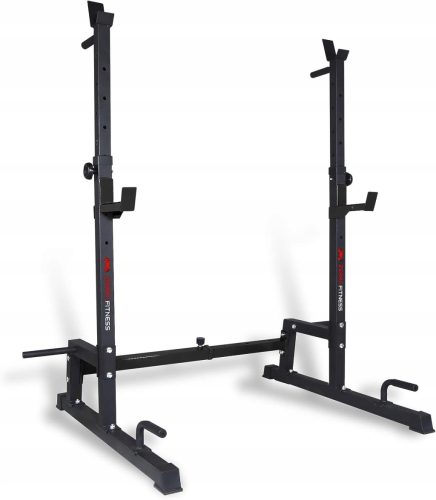 Stabilna rama: Średnica rur 50 mm, grubość ścianki 1,5 mm. Dodatkowo wzmocniona rama i gumowe podkładki sprawiają, że cała konstrukcja jest bardzo stabilna. Maksymalne obciążenie wynosi 120 kg. Doskonały do intensywnych ćwiczeń sztangą.
