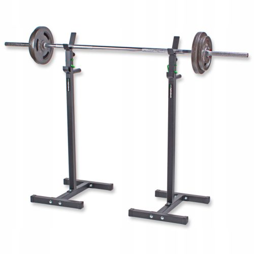 Wytrzymałość i niezawodność - stojaki posiadają podstawę w kształcie litery H, zapewniające maksimum stabilności. Regulowanie wysokości za pomocą śruby motylkowej oraz przetyczki zabezpieczającej to gwarancja pełnego bezpieczeństwa treningu ze sztangą.