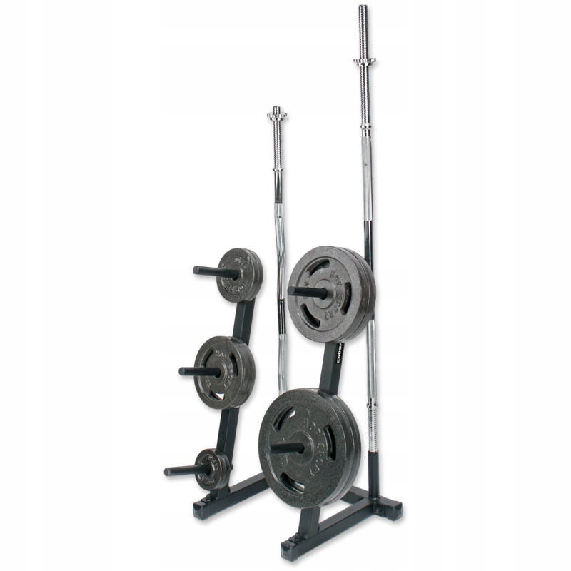 Specjalne uchwyty na gryf - na podstawie stojaka znajdują się 2 uchwyty do przechowywania gryfów. Ustawienie gryfu w pozycji pionowej zapewnia największą oszczędność miejsca. Gryf jest stabilnie trzymany przez uchwyt o wysokości 17 cm.