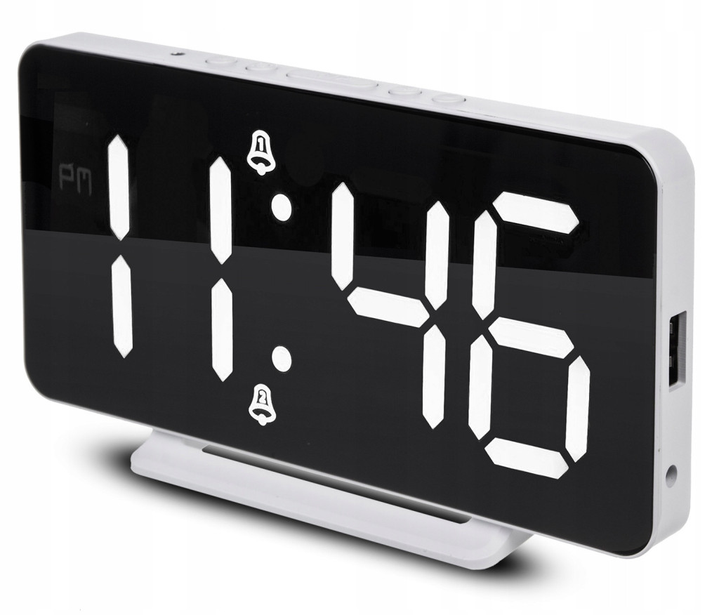 Nowoczesny zegar wyposażony w duży, czytelny ekran, który idealnie wkomponuje się w każde wnętrze, niezależnie czy urządzone jest w stylu klasycznym lub nowoczesnym. Duże cyfry zapewniają czytelność nawet z większej odległości, a wbudowany czujnik pozwala na wyświetlanie temperatury otoczenia.