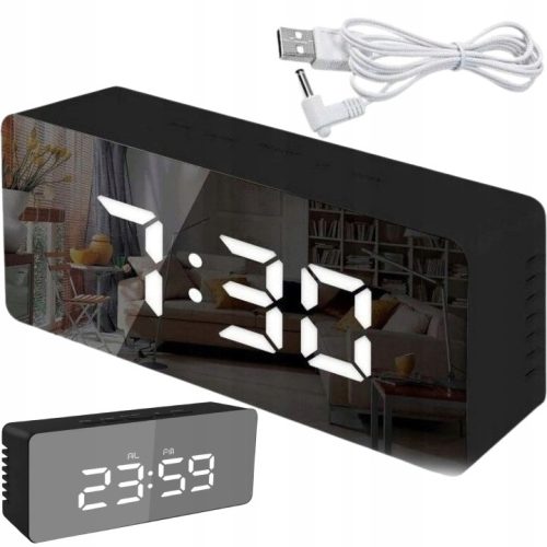 Estetyczny zegarek cyfrowy z lustrzanym wykończeniem to doskonały dodatek do sypialni, biura czy salonu. Jego podświetlane cyfry są doskonale widoczne w dzień , funkcja alarmu z drzemką sprawdza się na co dzień a elegancki połyskliwy cyferblat wspaniale prezentuje się w każdym wnętrzu.